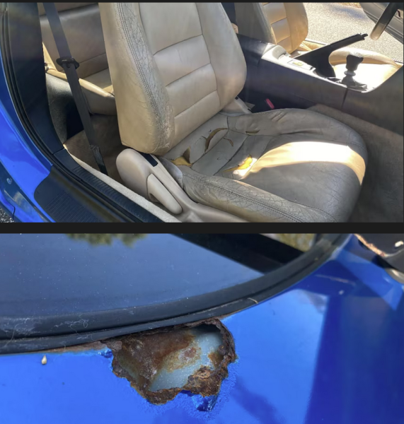 Front bumper was tied on with rope & the windshield wipers stopped working so I ran a rope out the wing window to the driver's side wiper & I had to pull it to clear the window - the floor rotted out on the passenger side so I put a piece of plywood over it to keep the water out & everytime I went through a puddle the water would hit the muffler & fill the car with steam.