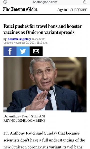 Fauci says the omicron variant will inevitably appear in the U.S.​