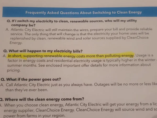 Hopefully folks read that line and decide with their wallet!Hello New York, it's just a matter of time before you'll have the option to purchase clean energy - which may cost approximately twice as much. Consider your choices carefully, friends. Let's not forget the precious wildlife that has sadly fallen victim to the initial phases of industrializing our once serene oceans. Surprisingly, this is deemed environmentally friendly..