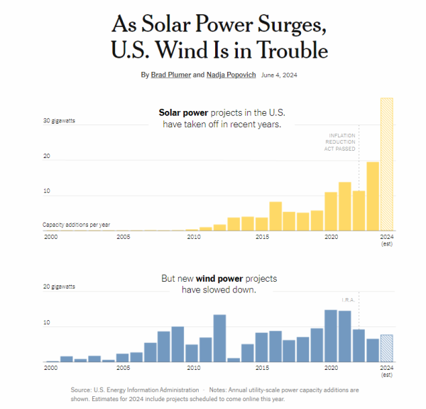 All smoke and mirrors. Inflation Creation Act.Interesting NY Times piece, here's part of it, if you want to read the whole thing, which is behind a pay wall, the article is here: As Solar Power Surges, U.S. Wind Is in Trouble