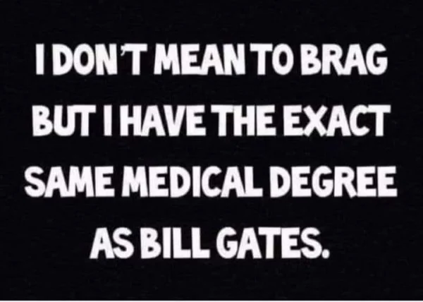 That was a joke brother, i have/had no idea if he had a medical degree or not. I know who Bill is and what he has done for many people. He, Malinda and Warren have spent millions helping people and research to help us all. Something i most admire.