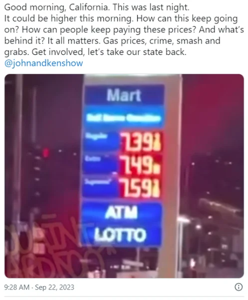 California gas prices near $6 a gallon