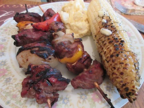 Leave husk on corn pul the fur out salt/pepper/butter fold husk back wrap in tinfoil grill not burn lolsteak kabobs tonite,,,first time i grilled corn,, i mite need some pointers any feed back,,,, ,, potato egg salad,,,,,,,,,,,, ><))):>