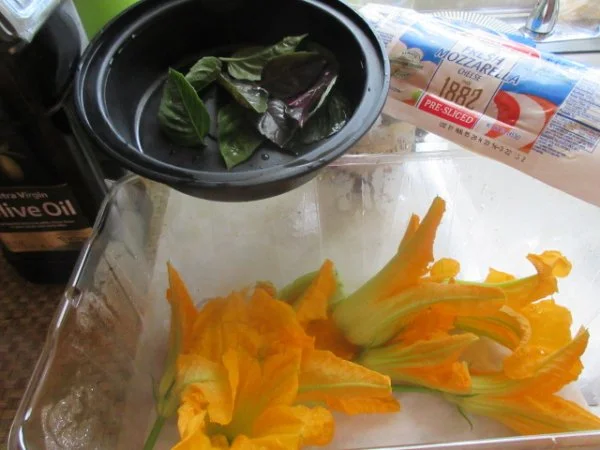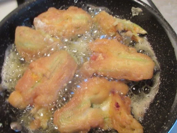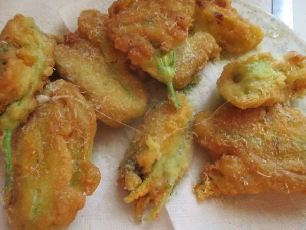 Awesomegrilled couple of cheese burgers,, onion rings,, stuffed and fry the zucchnin flowers,,,,,,,,, ><))):>