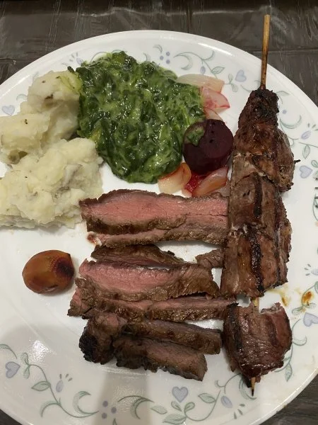 OMGTeriyaki skirt steaks , lamb and pork kabobs, roasted beets,mashed taters and creamed spinach ?????View attachment 38046View attachment 38047View attachment 38048View attachment 38049View attachment 38050