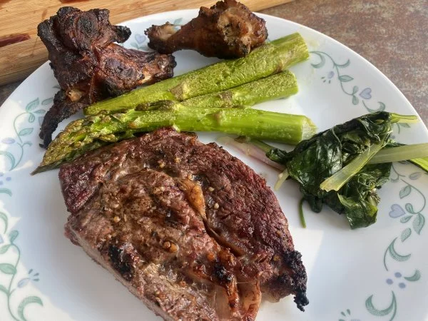 With fresh picked asparagus w/ garlic , sautéed bok choi leaves in olive oil and garlic View attachment 49320View attachment 49321View attachment 49322View attachment 49323that Montreal Stek Seasoning works great on pretty much everything - I've used it on smoked ribs & chicken