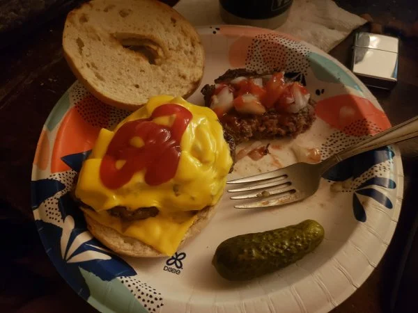 Burger & bagel works really well together....Luv it….i been slicing big B&G pickles and putting them on everything.