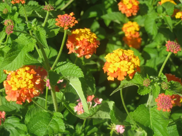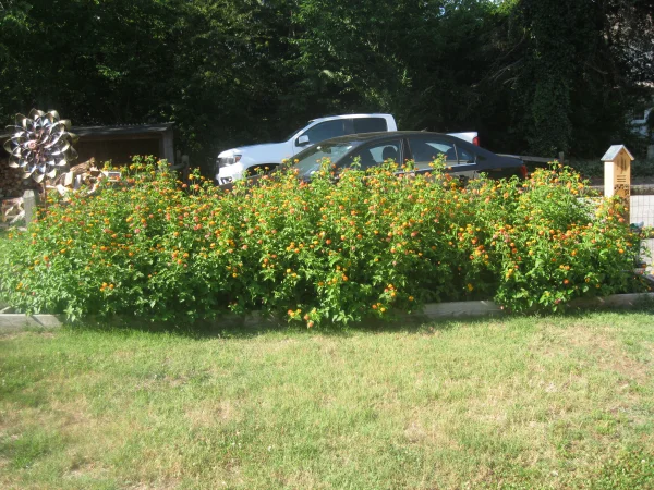 Some of you gardeners maybe familiar with a plant called Lantana. Down here it grows as a perennial. Completely gone during the winter it is dead from the ground up. In the spring it begins to regrow from the roots. i had planted 7 of them in little 4 inch pots 3 years ago against a post & rail fence along one side of the driveway. Not in the best soil.