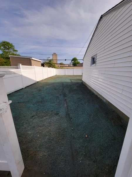 moving some broken up concerte chunks & mini bolders (football size) in light rain from the front to around the back to use as edging around the Banana Tree Garden - heaven help my back