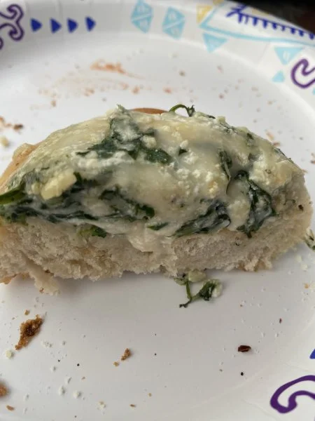 1/2 anchovy’s and pepper, onion and shrooms. One regular and stuffed garlic knots