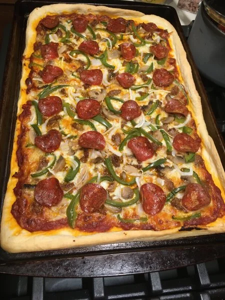 Has sausage under sauce and cheese