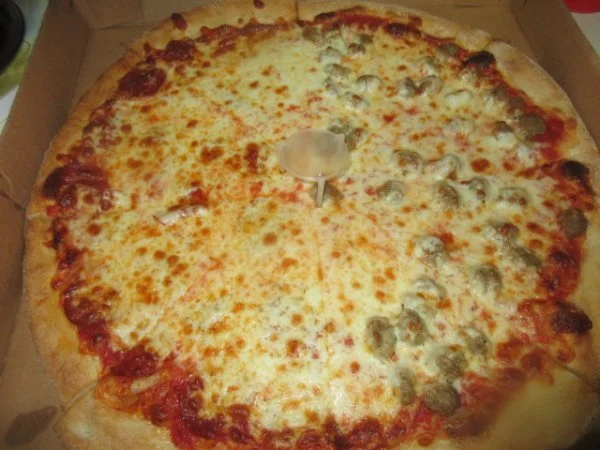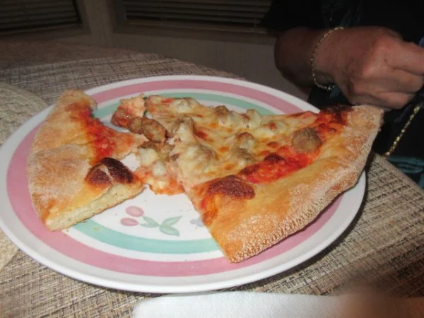 looking good yum yum ? ? ,,,,,,,,,,,,,,,,,, ><)))):>Visited mom and step-dad with Jenn. I picked up two pies from Carlos one grandma and one half sausage/half roni