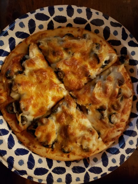 never tried pizza in an air fryer as it's normally baked - how'd it come out?Air fryer biboli pizza shrooms black olives