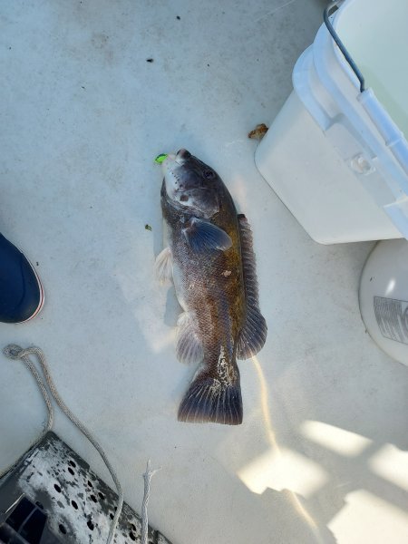 It rides on a now-discontinued Daiwa Proteus SS Heavy (PRSS64H), which I consider to be the finest factory inshore tog rod I've ever owned - and I've owned plenty. Just wish it had more substantial guides. Have to be careful carrying it to/from the boat, bundled with my other rods. A bit of a pain, but this rod is well worth the extra effort, believe me.