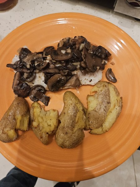 On a happier note, here's wifey's take on shrimp and fresh blackfish oreganata. Really, really great!: