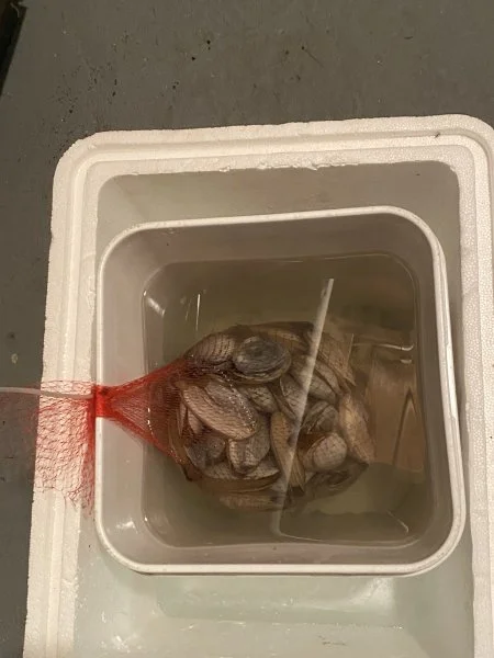 Have them in a bucket of saltwater surrounded by ice to clean themselves out