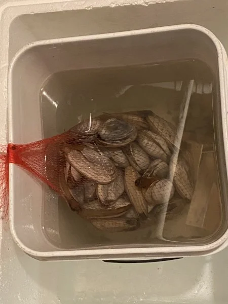 Checking in on the piss clams I dug up yesterday to have with lobster dinner tonight