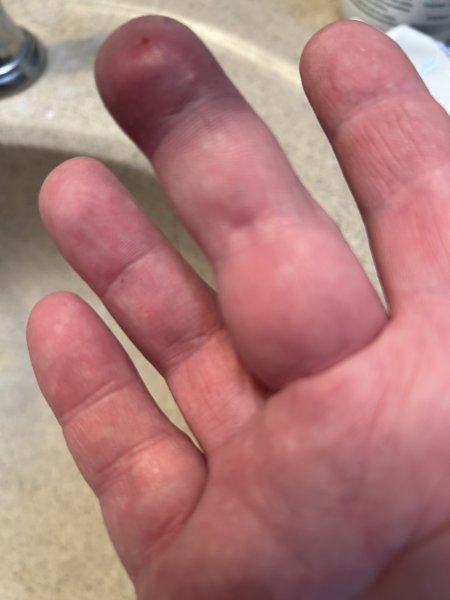 Just got done draining the blood and excess pressure on my finger nail and finger itself after I smashed the piss out of it loading some firewood into the utility trailer earlier today