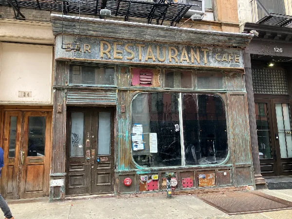 on Chambers street here in manhattan just off broadway,, i passed this very vintage Bar /Saloon, truly like the old movies… I notice the door was open where two men stripping down the old beautiful bar and mirrors…