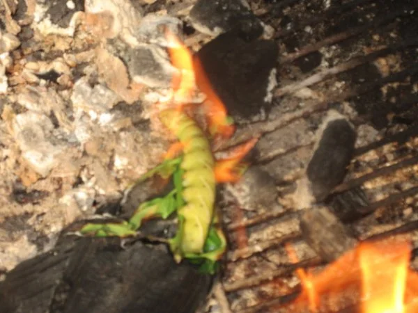 found this green sucker on one of my tomato plants eating the leaves,,thats Y i check on the vegs everyday,,,if not found he could eat all the leaves fast ,, so i picked him and burned him ? ,, we have a few pumpkins too,, one should get to a nice size,,,,,,,,, ><)))):>