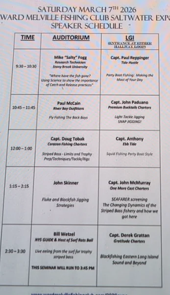 I looked at the Miller Place Bait and tackle site and the Speaker Schedule was posted there. I guess as a vendor, he would get a copy.
