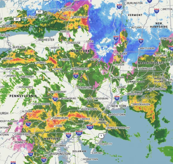 Rain, with thunderstorms also possible after 1am. Temperature rising to around 52 by 4am. Windy, with an east wind 21 to 29 mph, with gusts as high as 50 mph. Chance of precipitation is 100%. New rainfall amounts between 1 and 2 inches possible.