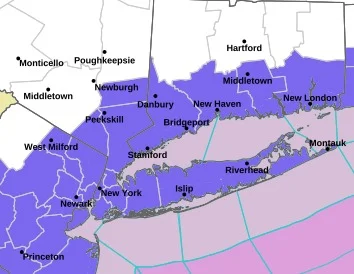 Snow map from the National Weather Service with parts of Long Island and New Jersey in the sweet spot for 3 to 6 inches of snow