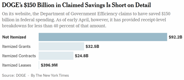 Even that figure may be too high, according to a New York Times analysis of DOGE’s claims.