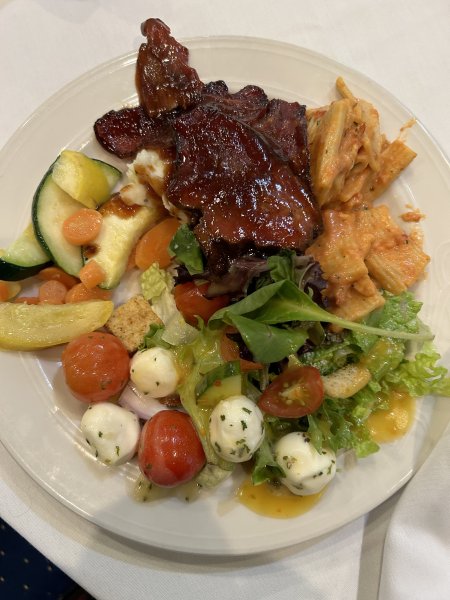 I gotta get some classLunch at class, salad, tomato and mozzarella, grilled vegetables, penne Ala vodka, brisketView attachment 73886