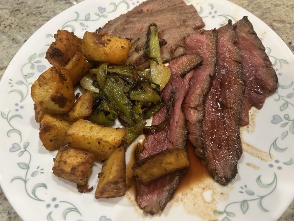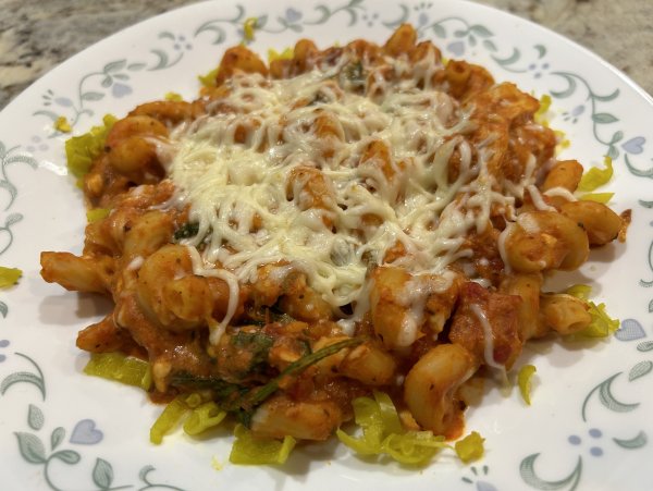 Leftovers from last night with diced hot peppers to kick it up a bit