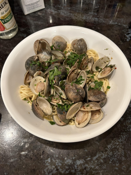 I wonder if the pain made dinner taste sweeter than usual, Linguine w/white clam, using up 2 dozen fresh Cherrystones...