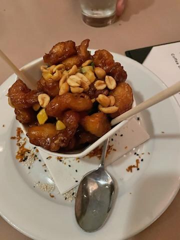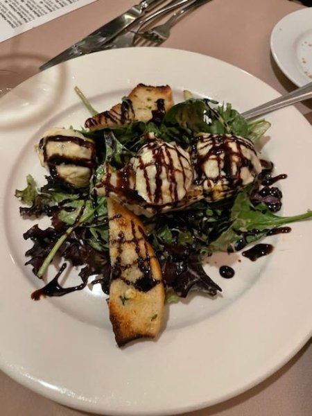 Apps were stuffed artichoke hearts(gorgonzola stuffed with toasted croutons and balsamic drizzle) and Peanut Thai Glazed Shrimp