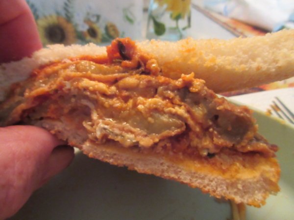 I had no clue you could grow eggplant parm??eggplant parm from our garden,,on toast,,,,,,,,,,,,,,,,,,,><)))):>