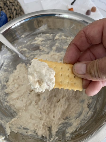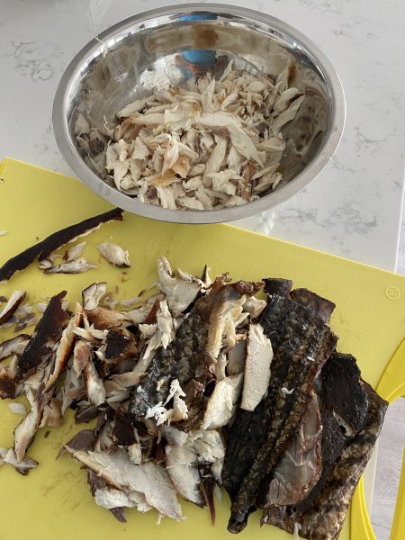 Brine fillets in water, salt, brown sugar, garlic, hot sauce for like two hours. Removed and dried and let sit for an hour. Smoke using apple wood for maybe 1.5 -2 hours depending on heat.Whats your full prep method from smoking to dip?