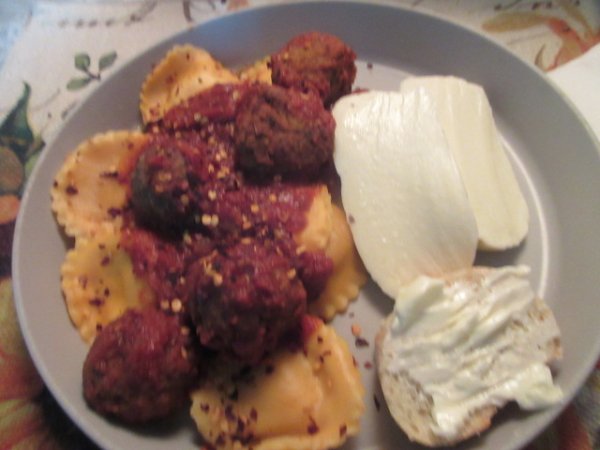 That’s some breakfastlobster ravs,,meatballs,,, fresh mozz,,,,,bread,,,,,,crush red pepper,,,,,,,,><)))):>