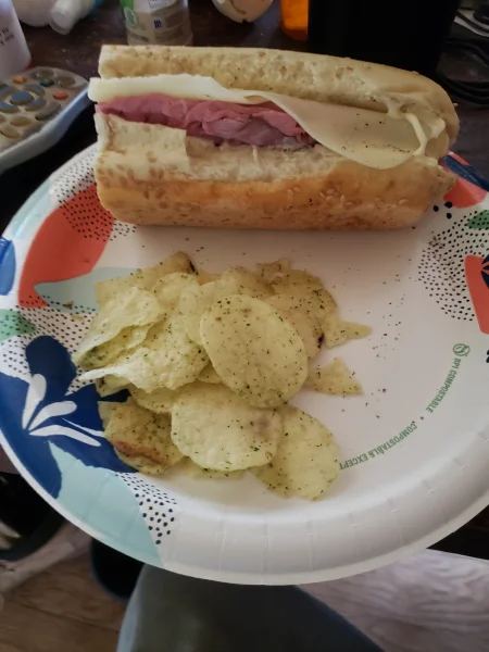 Roast beef & Swiss extra mayo S&P sour cream/onion chips