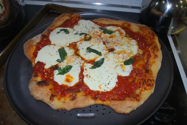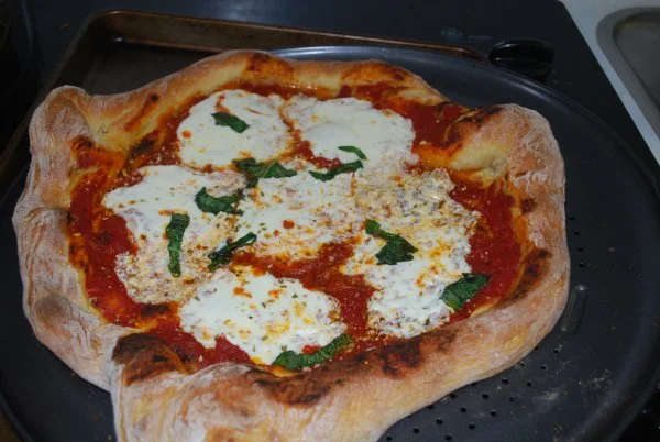 Yes, all pizzas are thicker at the edges than in the middle but letting it rise then spreading it thin is where its at...