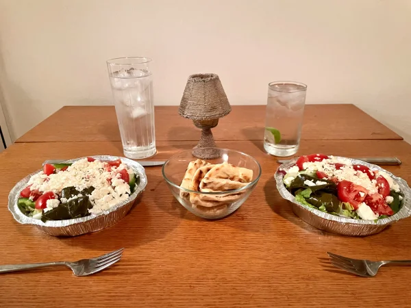 and the lamp made it in..................................Another Greek Salad night this time from Aliada’s; they add Stuffed Grape Leaves - yum