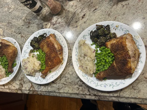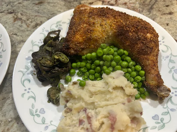 Looks good to mePeas, red bliss mashed potatoes,ramps, and chicken quarters quarter seasoned with a combination of McCorormicks the blend and butter garlic. Guess it was good, no leftoversView attachment 107771View attachment 107772View attachment 107773