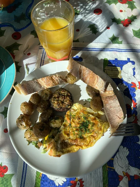 Lox Frittata, baby potato, stuffed shroom, OJ… HNY, cell…