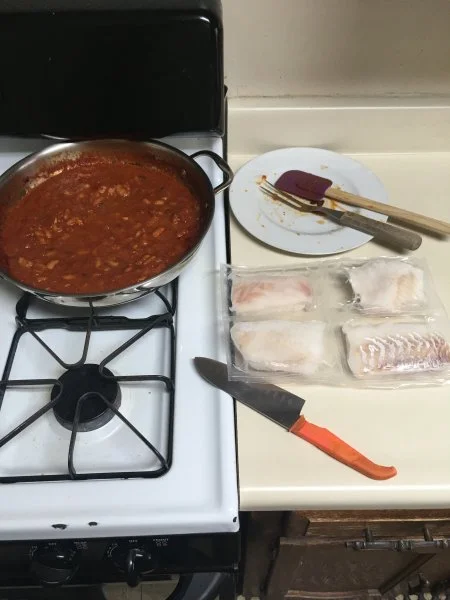 Tomato’s on a basil sauce from the garden and onions and peppers from garden with parsley and cheese sausage on a bed of roasted kale tossed with home made bacon bits ?