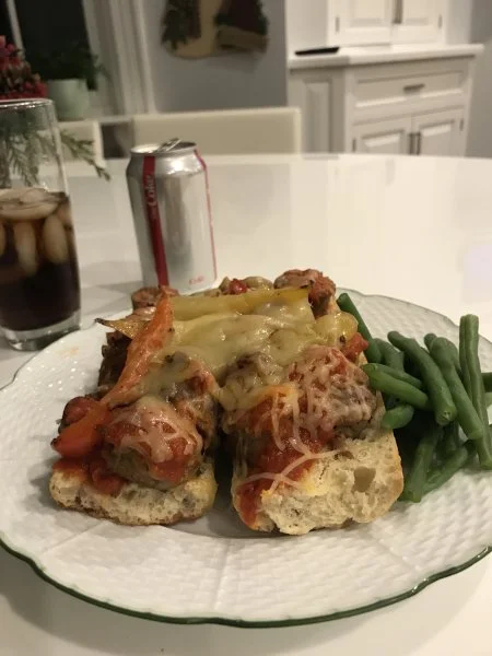 View attachment 14353Sausage n peppers wedge, green beans, glass of Diet Coke!!!!