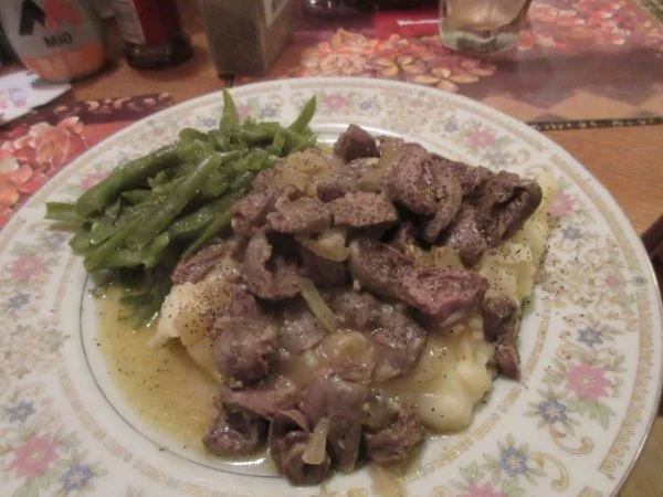 Uh ohchinacat what do you think,,,,,, all i could afford tonite for dinner is chicken hearts,,onions, garlic, mash,french string beans, no carpert cleaning today= no ?,,,,maureen had tuna melt,, she had just enough mayo,, we ran out of mayo too,,,,,,,,,,,,,,,,, ><))):>