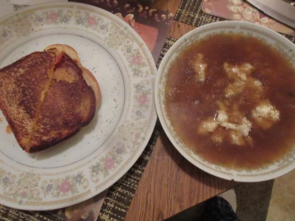 where's the liver hiding???grilled cheese with tomato,,french onion soup with mozz,,,,,,,,,,,,,,, ><))):>