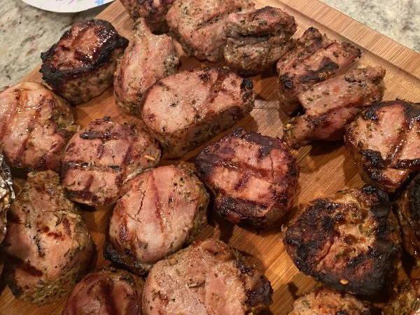 After losing over 50 lbs since March and keeping all of it off for the past month, I said "Screw the salad!!" last night for my birthday and grilled up some veal chops and topped them with garlicky Shitake mushrooms with a green bean w/sliced almonds side.