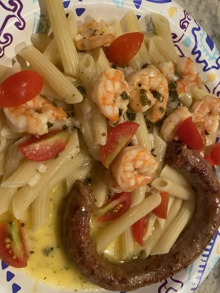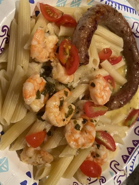 Pasta and shrimp my daughter made