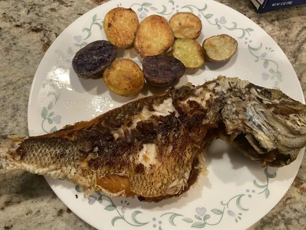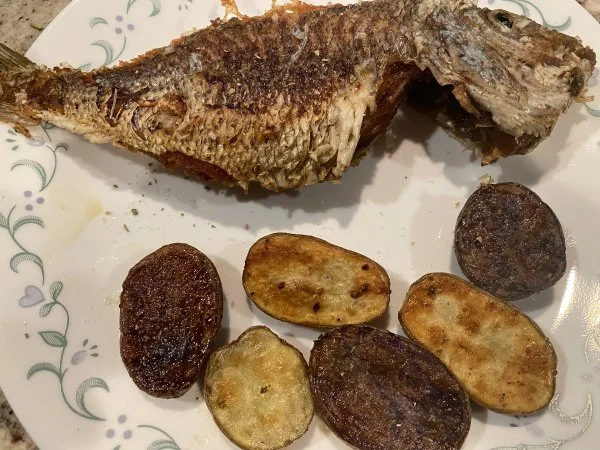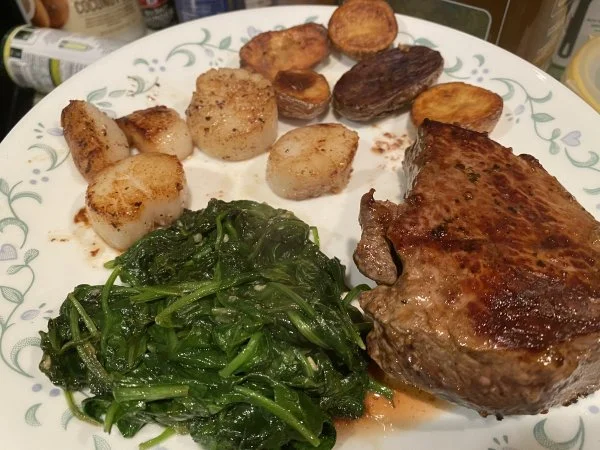 Jenn had the Ribeye (medium rare) served cajun blackened with creamy horseradish sauce