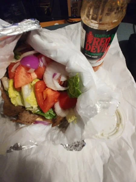 The local pizza joint is owned by a Greek who's 80 year old mom makes her own gyro meat.