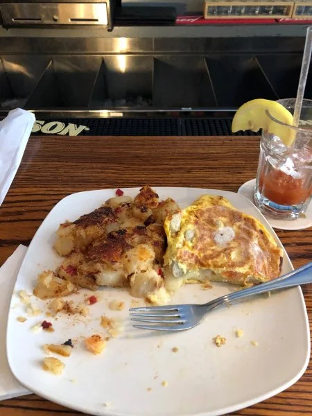 Bloody Mary?Dang, I was so hungry when Brunch time rolled around, I dove in before I could take a proper Foto. Three egg omelette, turkey sausage, mozzarella and tomatones.