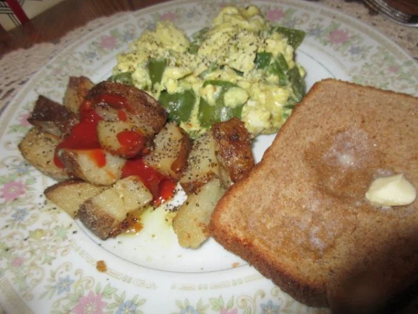 guys we had this last nite.............eggs.........peppers........potatoes,, toast.............View attachment 39254